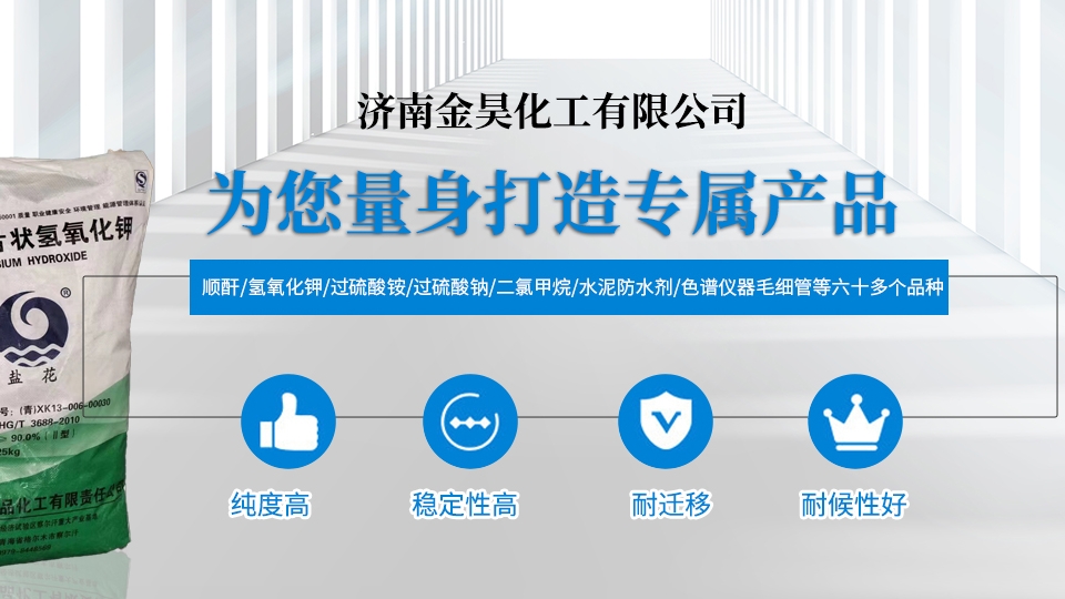 我公司是一家集、研發(fā)、貿(mào)易為一體的綜合性化工公司。主要涵蓋無機化工產(chǎn)品、化工產(chǎn)品、實驗儀器等幾大系列。主營產(chǎn)品為氫氧化鉀、過硫酸銨、過硫酸鈉、順酐、二氯甲烷、水泥防水劑、色譜儀器毛細管等六十多個品種。產(chǎn)品主要用于農(nóng)藥、農(nóng)肥、水處理、制藥、造紙、冶金、建筑添加劑、橡膠制造等多個領(lǐng)域。 歲月不居,時節(jié)如流。公司于2006年成立,如今已十幾個年頭了。一路走來我們一步一個腳印,兢兢業(yè)業(yè),誠信經(jīng)營,如今公司已發(fā)展成為年銷售額近陸仟萬元...